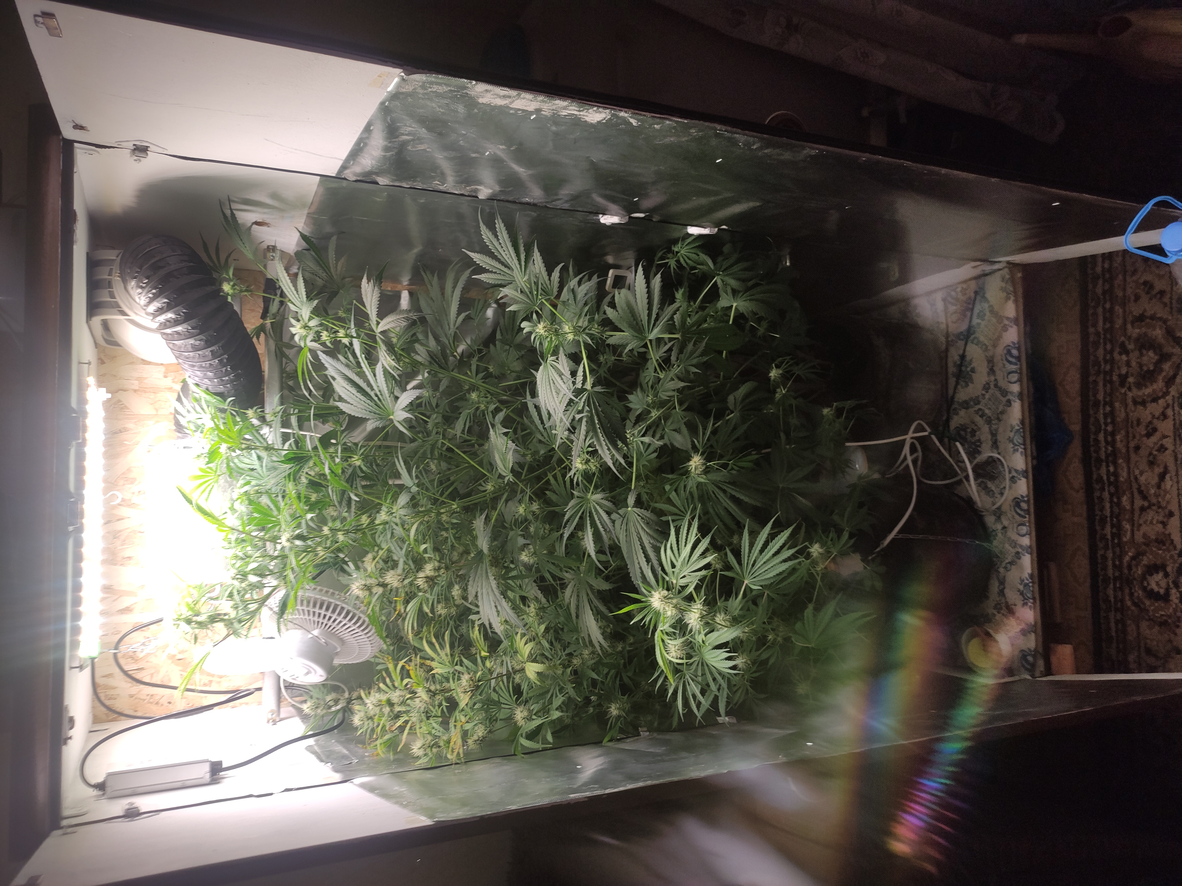 Это первый гров за 4 года, семена естественно покупал только на GrowerZ , (ребята вы как всегда на высоте👍)Короче за полтора месяца выросло два монстра бокс 160см. Пришлось гнуть уже упирались в потолок ствол у основания как горлышко бутылки, сейчас цветёт 🌸 уже неделю, сегодня попробовал 2 мокрых прибило, представляю что будет после созревания и пролечки😋😁шишек на них просто пи...ей! я такого ещё не видел в своём боксе🤷