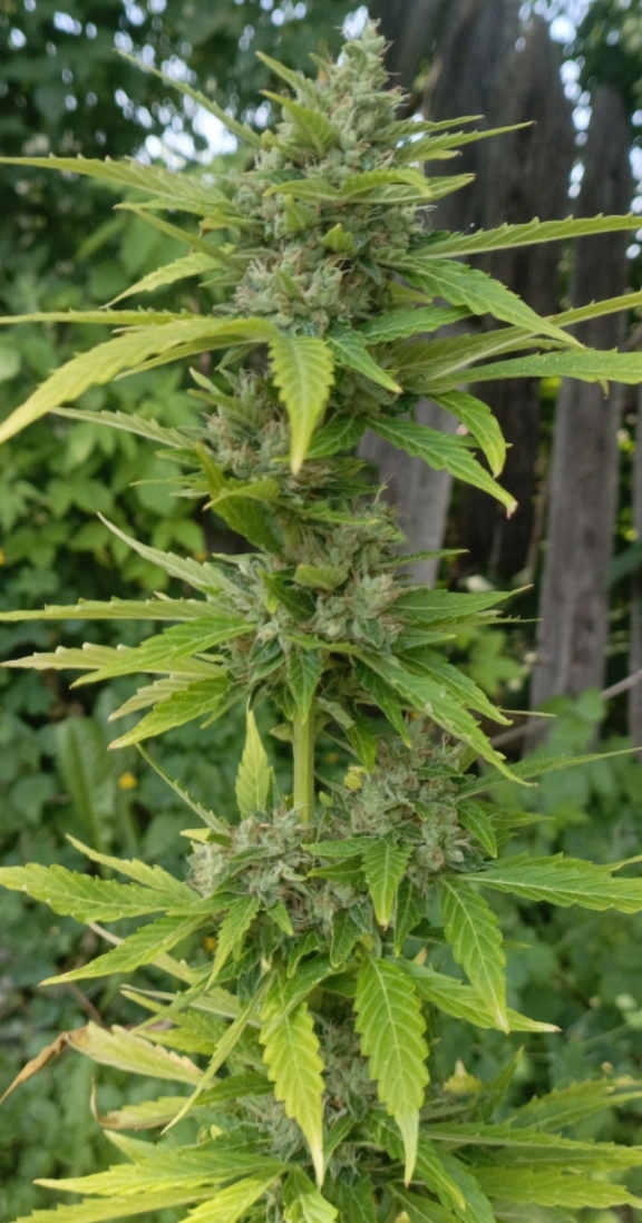 Растёт в не лучших условиях, но растёт. Кустик не такой ветвистый как хотелось бы. Погода еле тёплая, перепады температуры и дожди(. На последнем фото 7 недель. Запах классный, начал цвести, сорвал 1 листочек, попробую сегодня)