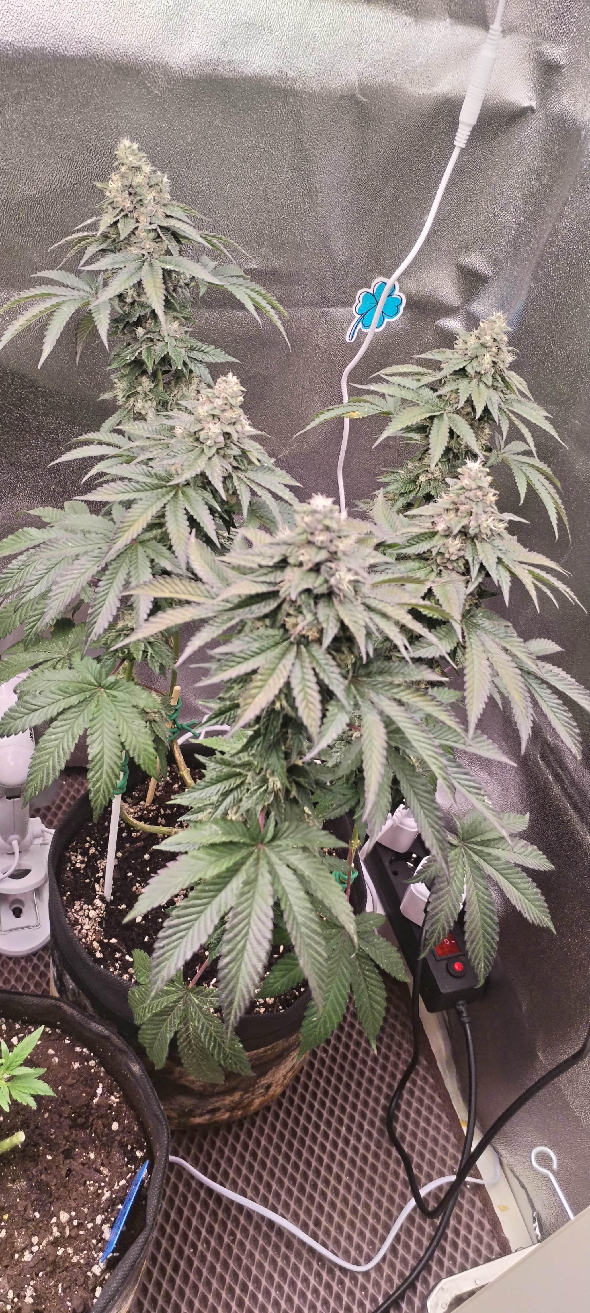 да и вообще как будто кустики себя лучше начали чувствовать, до этого все листья были немного опущены, хотя субстрат был влажный, после классики стали бодрые. сейчас только успеваю лампочки поднимать выше) полив примерно раз в 3-4 дня по 3 литра на 10.5 литров субстрата. пока так же компот. чистой воды еще не было ph 5.5-6.5 всю дорогу. думаю без скрог сетки не обойтись уже, мелочи много в глубине а обрезка и железные колышки уже не очень помогают. да и места в боксе не хватает чтобы свободно раскидать ветки.