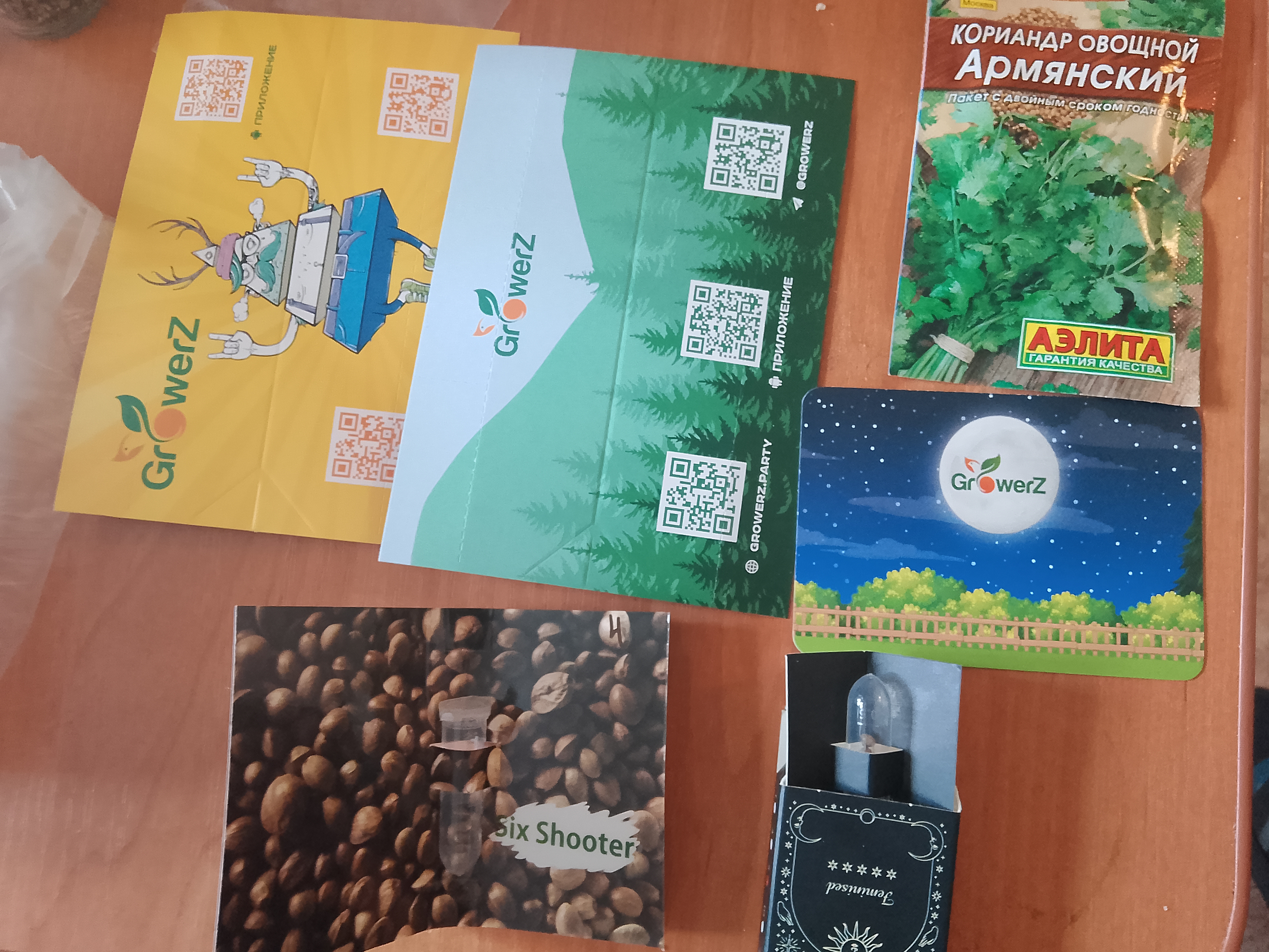 Приветствую! Заказ шёл неделю, быстро. Ещё бонусами 4 семки, другого сорта, лунный календарь, два магнитика и ещё какие-то бумажки с дико ржачными картинками. Пока проращиваю. Спасибо Вам, ребятки за сервис! Работайте дальше, удачи!