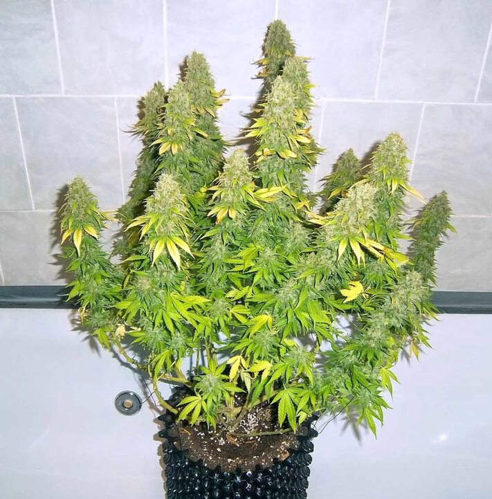 Про выращивание (для новичков как я): Это правда танцы без бубна! Посадил в универсальный грунт, поливал, когда вспоминал (сорри, растениели). Но она, зараза, такая живучая и неприхотливая — росла себе, как будто так и надо. Плесень и болезни её не берут, правда! Единственная "проблема" — она так бурно начала куститься, что я её еле-еле в гроутенте уместил. Пришлось немного LST (гнуть ветки) делать. Получился такой пушистый, смолистый куст-монстрик, весь в трипомах, как в сахаре! Смешно было — она настолько сладко пахла карамелью и скунсом, что я соседям про "новый сорт экзотических помидоров" рассказывал. Поверили, вроде.