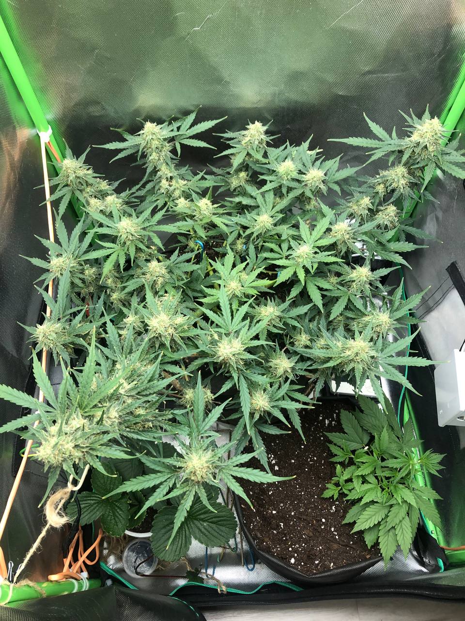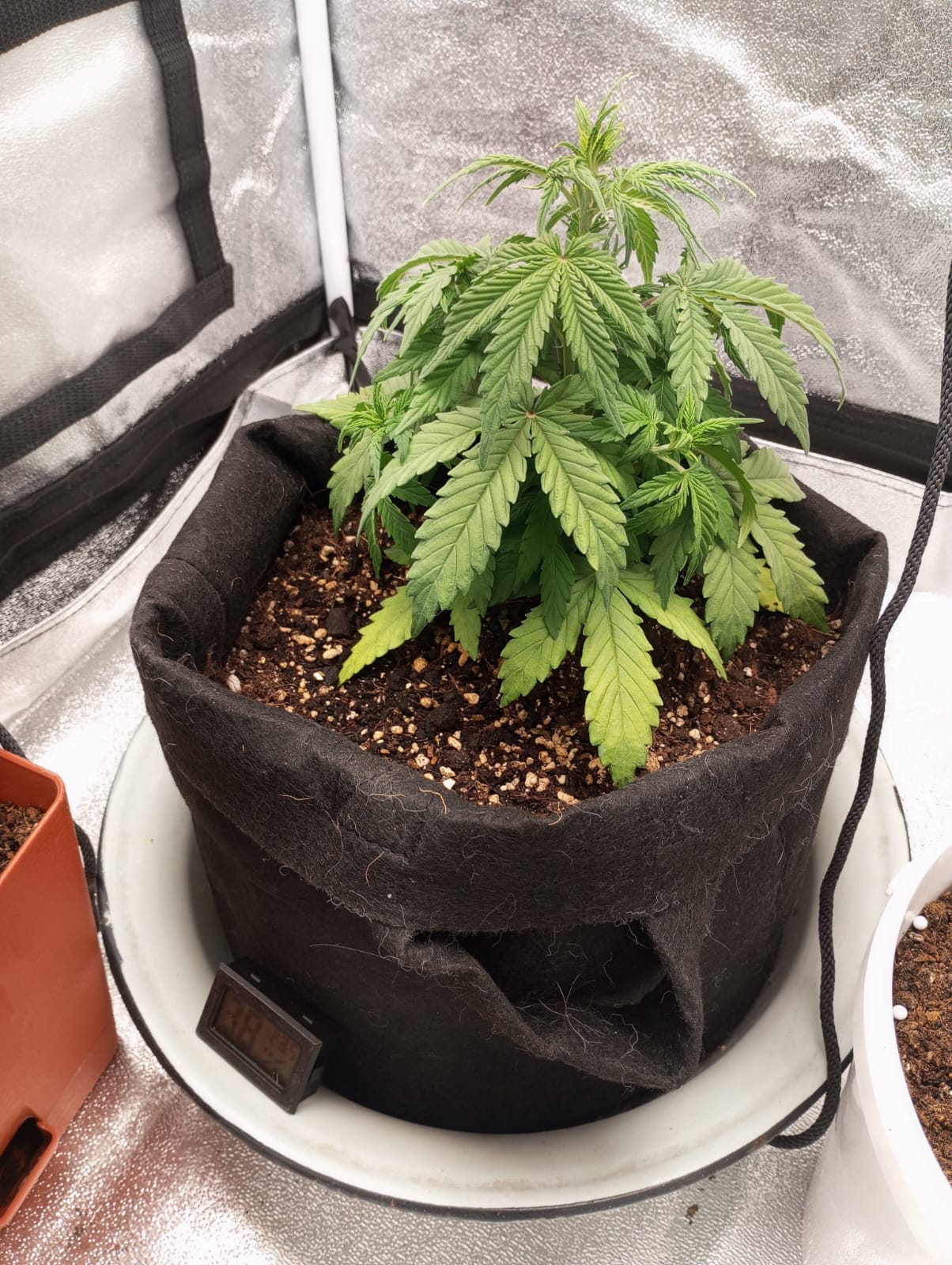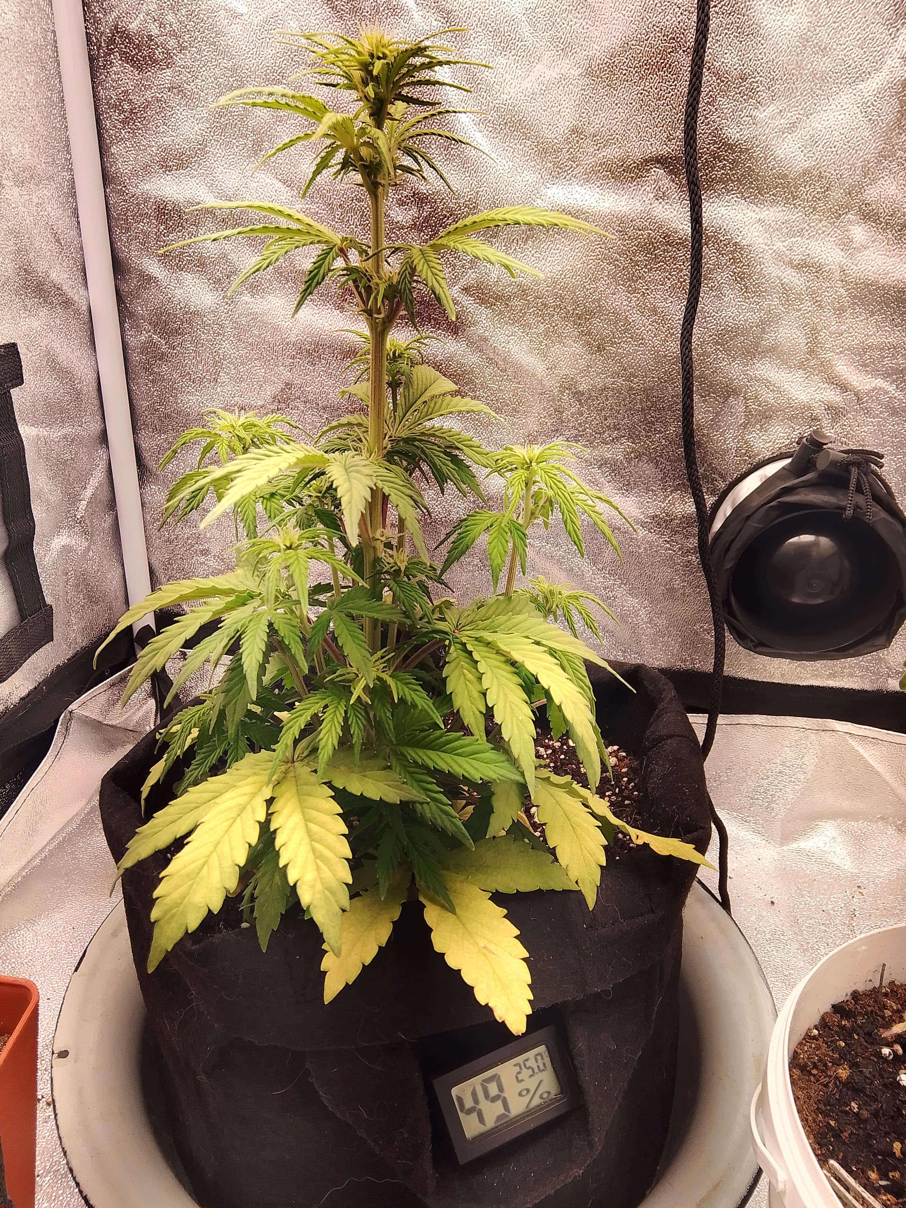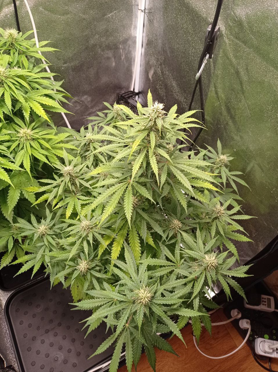 Засадил две бонусные семки с разницей в 10 дней, одна из них потерпела две фатальные пересадки из непромытого кокоса в грунт biobizz light mix, и затем в горшок по-больше в обычный грунт для цветов в котором было 5.0 EC(это дох*я если что, слава богу заметил позже при проливе и исправил). Сказать что я ох*ел - ничего не сказать, растишка была присмерти дважды из-за моих кривых рук, я уже думал выбросить на помойку, потому что выглядила она так, словно уже умерла, вся желтая, листва полуживая. Но спустя 3 дня после промывки грунта она ожила, окрепла, быстро вернула фототропизм и восстала из мертвых, начала быстро набирать мощь, начала направлять верхушку в сторону лампы, желтизна пропала и начала фотосинтезировать как на дрожжах без удобрений. Никогда не видел такого сильного стремления выжить 😊. Хорошо, что не сдался и дал ей шанс на поправку. В такие моменты понимаешь насколько сильная генетика, благодарю за это сидбанк GrowerZ.