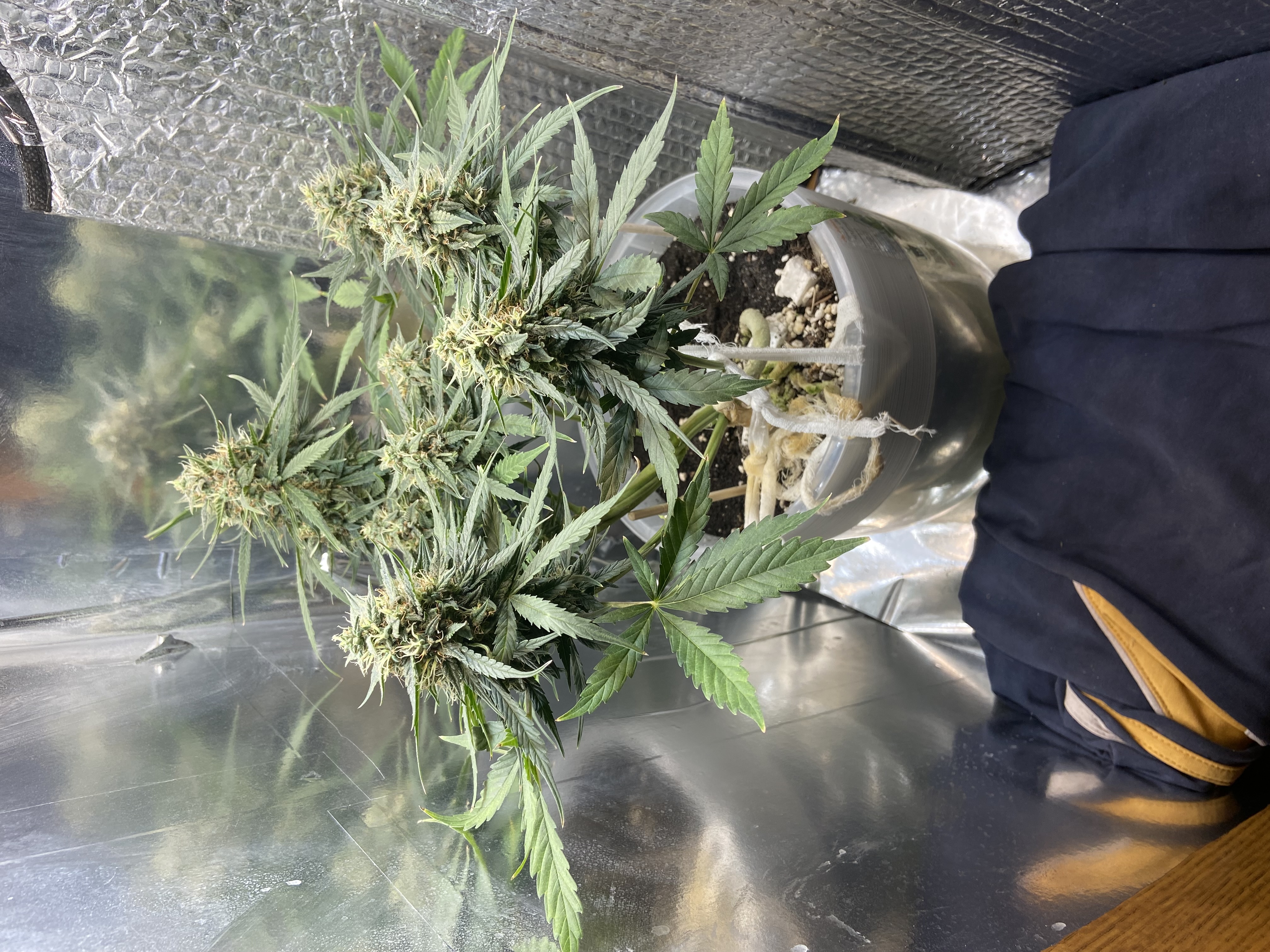 Крч Вот какие у меня были условия выращивания Спида в компактном помещении, мб кому-то будет полезно. Гроубэги брал квадратные, они плотно помещались в паллетном ящике, немного пришил их шилом и капроновой ниткой, чтобы подогнать под размеры ящика, объем 12л, но я их подвернул и толщина грунта была около 15-20 см( на стелсбокс хватило, хотя внизу корням тесновато), общий объем грунта был не более 7 литров на горшок. Самое приятное, что если все условия соблюдены, то действительно можно начинать сбор урожая на 49-й день (попробовать его можно уже с 38-40 дня).