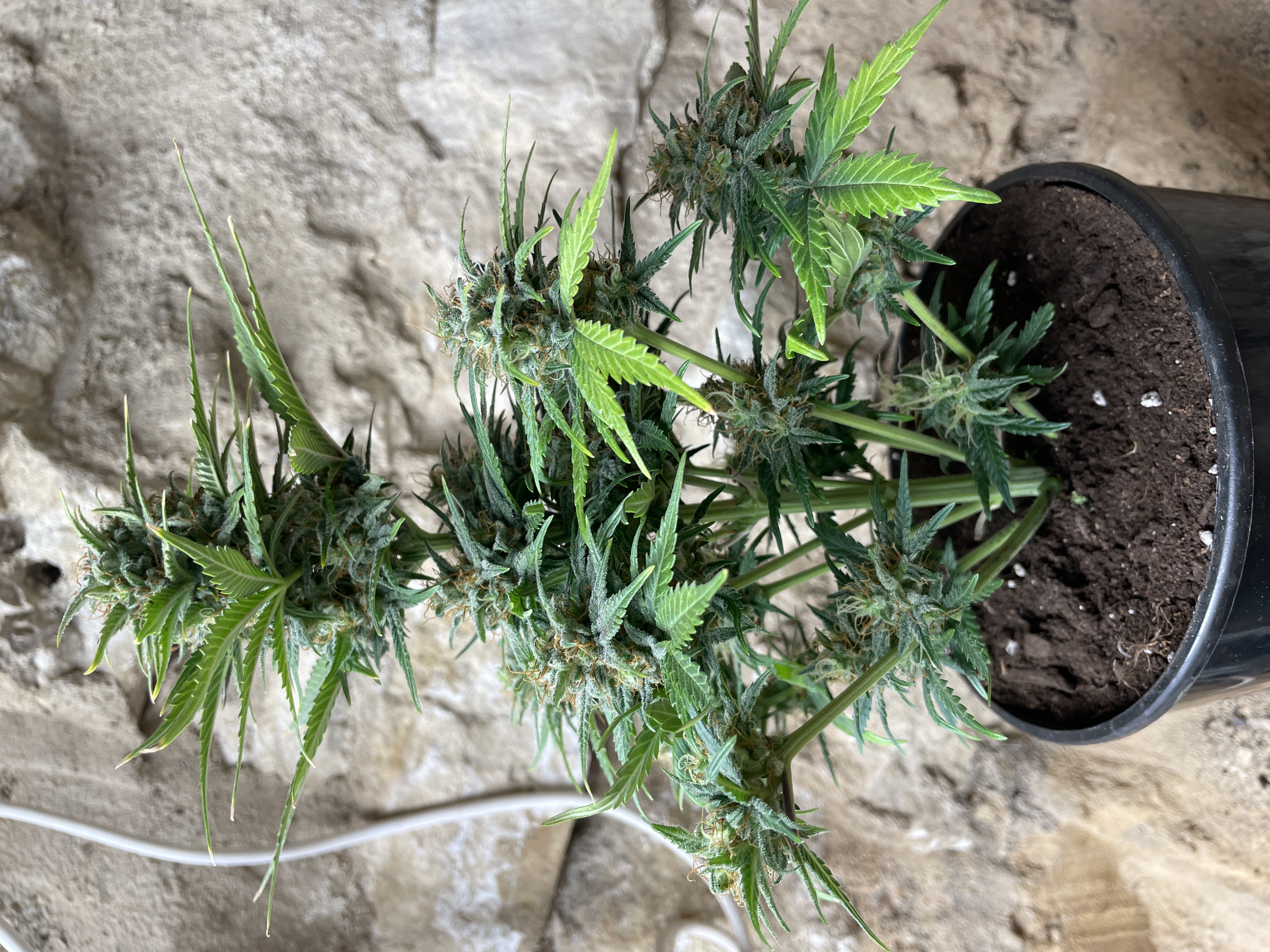 Сорт быстрый, без тренировок за 2 месяца дозрел. Устойчив х похолоданиям и плесени однозначно! Лето у нас в этом году очень холодное! Кустик невысокой, листвы немного. Запах приятный, заходит легко даже без пролечки.Эффект мощный, многогранный, подходит для посиделок с друзьями, весёлый. Я предпочла поэтапную срезку, низа оставила дозреть. Хорошо сорт.