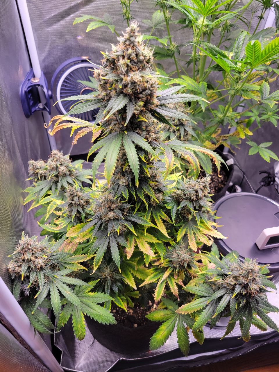 Просто шикарный сорт, шишки плотные, куст кушает что слон, небойтесь перекормить, поднимал на Бизах, последнюю неделю проливал покупной водой в пятишках, сушил в темном месте , вырвав с корнем и повесив верх корнем, курил прям с листвой которой не так и много. Советую продавца и его бобы